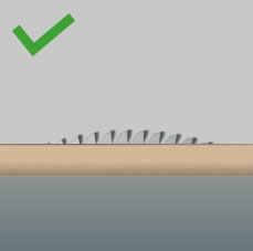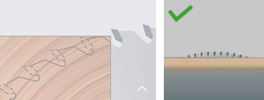 Antes de comenzar a cortar el material, asegúrese de que la sierra esté correctamente fijada a la máquina. Para un buen acabado, coloque siempre la sierra como máximo 1 cm por encima del material a cortar, ya sea madera, MDF, MDP, otros tipos de tableros de partículas, metales o plásticos. Vea abajo: